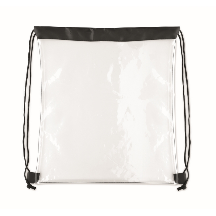 Průhledný stahovací batoh se šňůrkou z EVA a PVC. Polyesterové šňůrky. Rozměry: 36 x 40 cm