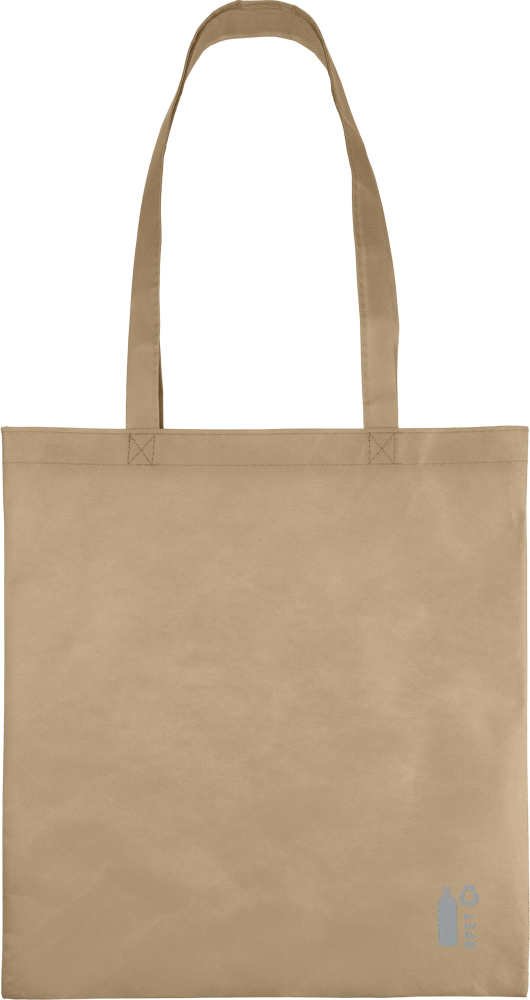 Taška z recyklované netkané textilie PP (80 g/m2) s křížově prošívanými uchy. Má jednu prostornou přihrádku. Objem 11 l, nosnost 7 kg. Rozměry: 37 x 41 cm
