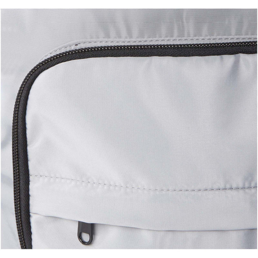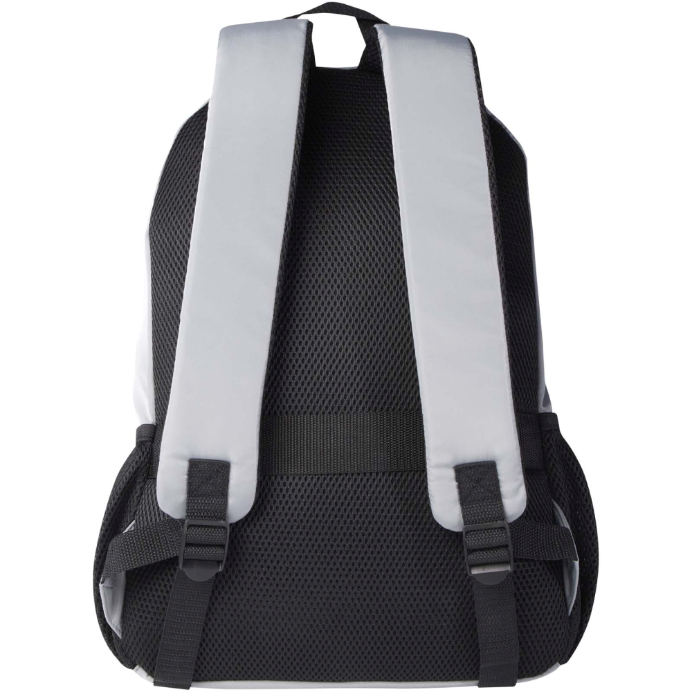 Batoh je vyroben z recyklované měkké a nemačkavé tkaniny a kvalitní podšívky z RPET. Batoh má přihrádku na 15” notebook, organizační přihrádku, přední kapsy na zip, boční elastické síťované kapsy a záda ze vzdušné síťoviny s popruhem pro upevnění na kufr na kolečkách. Nastavitelné ramenní popruhy pro optimální pohodlí při nošení. Objemová kapacita: 20 litrů. Nosnost do 10 kg. Neobsahuje PVC. Rozměry: 30 x 45 x 16 cm