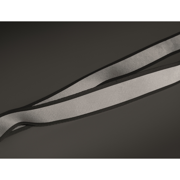 Reflexní 2,5 cm šňůrka na krk z RPET polyesteru. Kovová oválná karabinka, odnímatelná přezka a bezpečnostní PP spona. Pouze pro pro reklamní účely. Rozměry: 50 x 2.5 cm