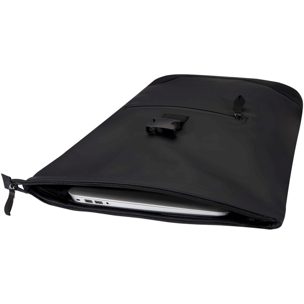 Tento batoh s rolovací střechou je vyroben z prvotřídní recyklované PU kůže s barevně sladěnou podšívkou z RPET a spojuje moderní styl s dlouhou životností. Voděodolná povrchová úprava chrání vaše nezbytné předměty a rolovací zapínání nabízí flexibilní úložný prostor, ideální pro dojíždění, cestování nebo do posilovny. Uvnitř je polstrovaná přihrádka na notebooky do úhlopříčky 15,6” a další kapsa na zip vám umožní uspořádat si techniku a každodenní nezbytnosti. Na vnější straně zajišťuje bezpečný přístup přední kapsa na zip s nepromokavým zipem, zatímco polstrované, nastavitelné ramenní popruhy a prodyšný zádový panel zajišťují celodenní pohodlí. Rozměry: 29 x 56 x 12 cm