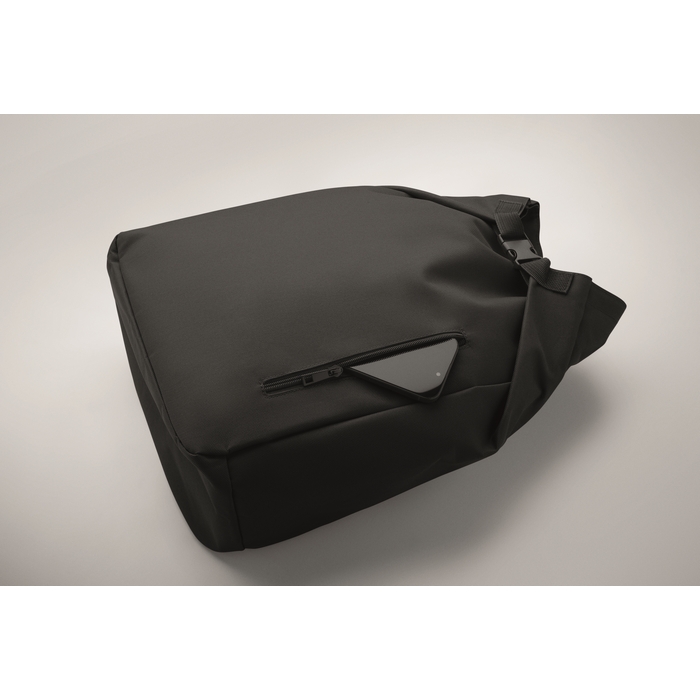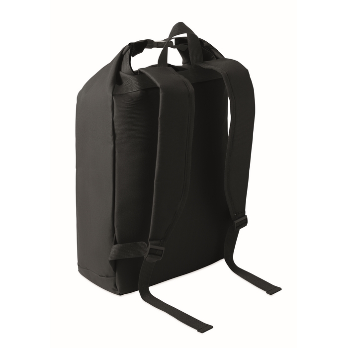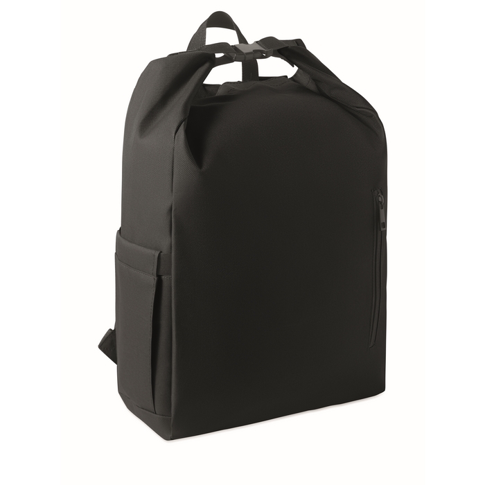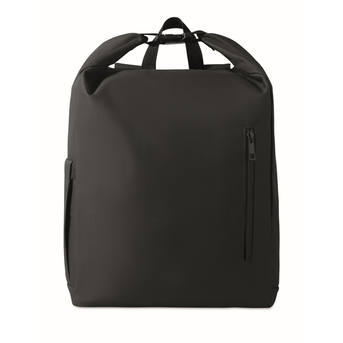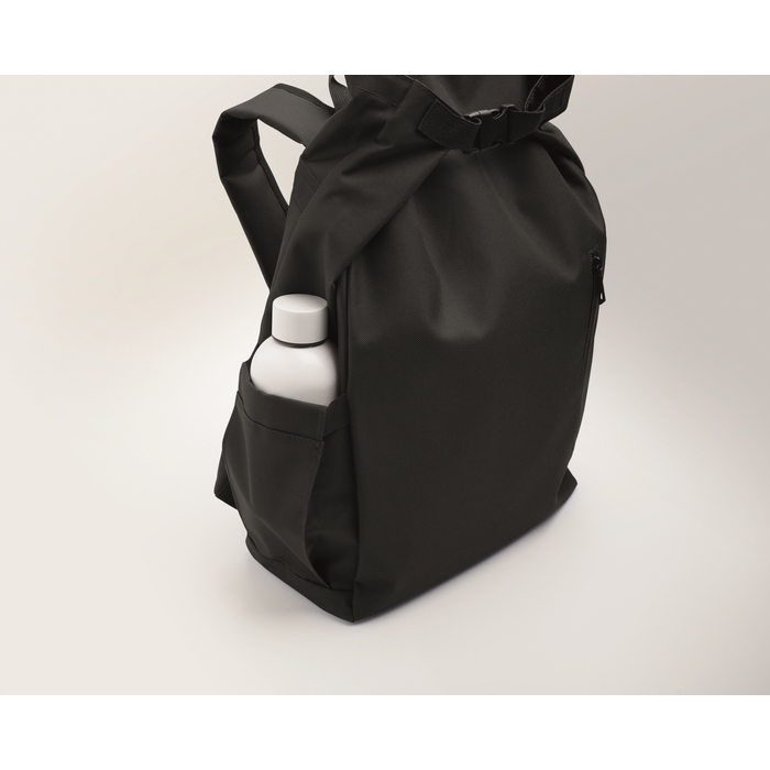 Rolovací batoh na 15 notebook z polyesteru 600D RPET s polstrovanou podšívkou z 210D RPET. Má přední kapsu na zip, elastickou boční kapsu a nastavitelné ramenní popruhy. Rozměry: 31 x 14 x 46 cm