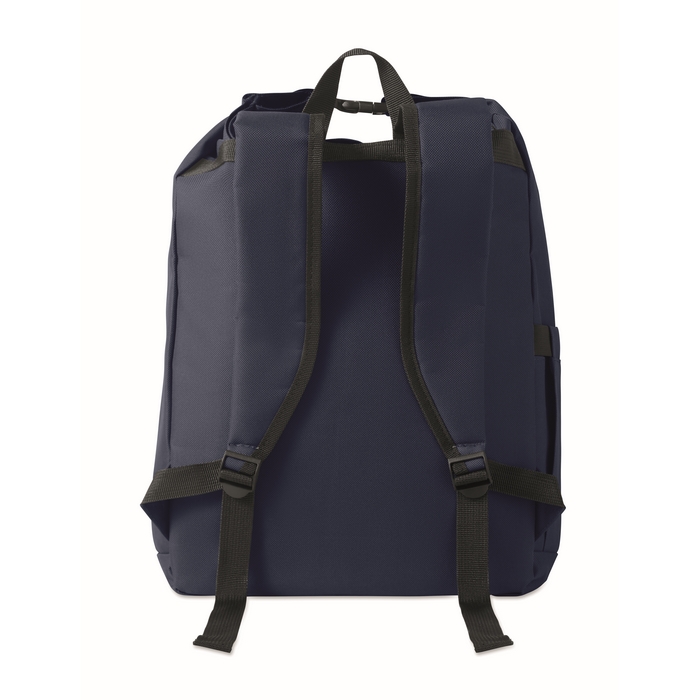 Rolovací batoh na 15 notebook z polyesteru 600D RPET s polstrovanou podšívkou z 210D RPET. Má přední kapsu na zip, elastickou boční kapsu a nastavitelné ramenní popruhy. Rozměry: 31 x 14 x 46 cm