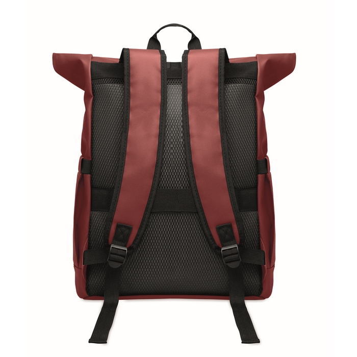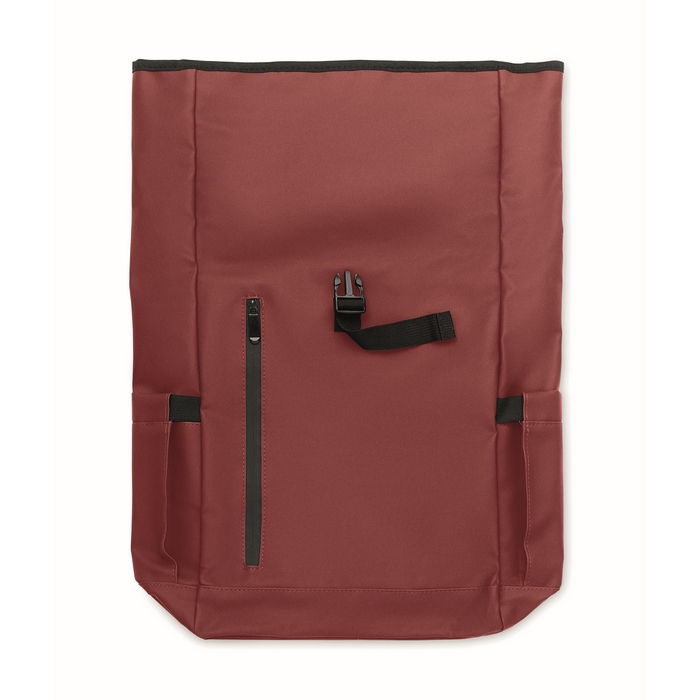 Rolovací batoh na 15palcový notebook z polyesteru RPET 600D potaženého PU s podšívkou z polyesteru RPET. Síťovaná polstrovaná záda s kapsou na zip a popruhem na kufr na kolečkách. Polstrovaný ramenní popruh se síťovanou vnitřní úpravou. Rozměry: 30 x 25 x 57 cm