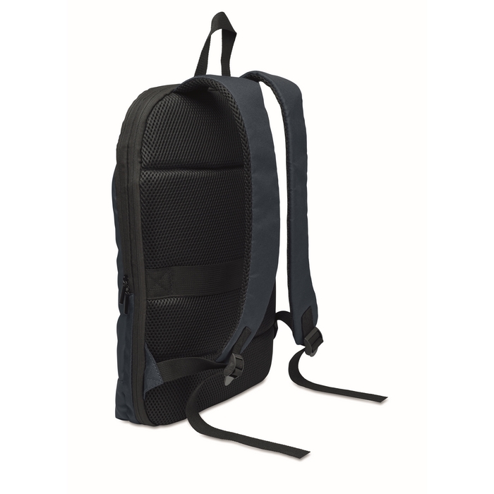 Rozšiřitelný batoh na 16 počítač z polyesteru RPET 600D s PU potahem na přední straně a podšívkou z RPET polyesteru. Skrytá kapsa na zip a polstrovaná přihrádka na notebook, přední přihrádka, síťovaná záda a popruh na kufr na kolečkách.Rozměry: 30 x 6 x 44cm