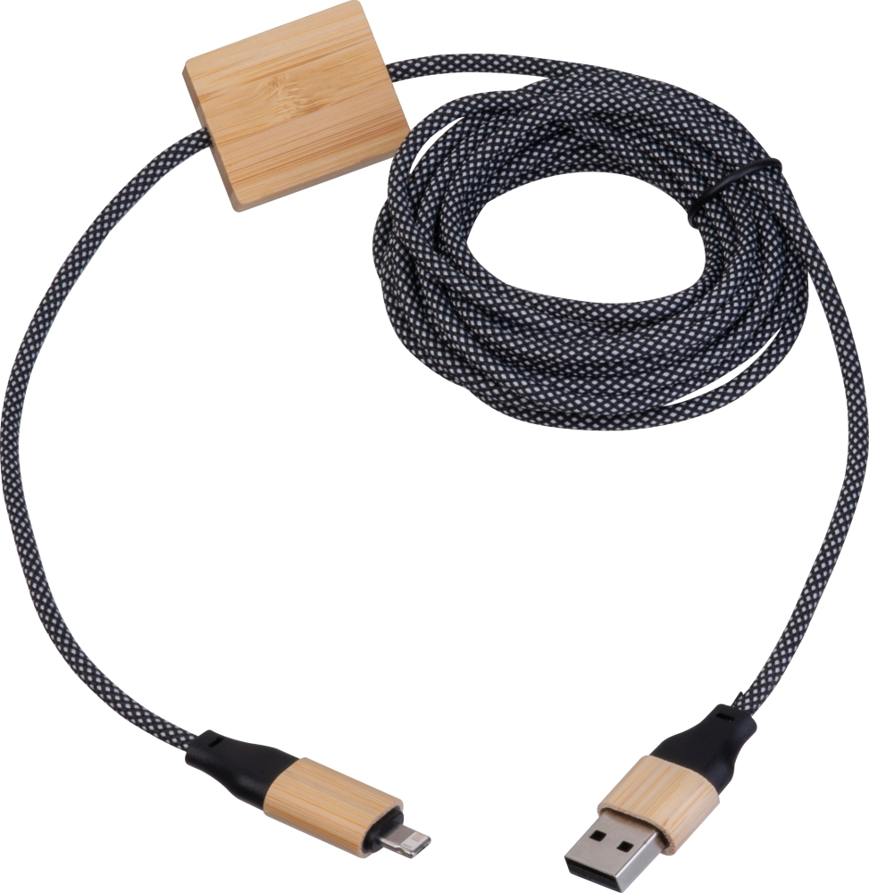 3 m rychlonabíjecí kabel (60W) s USB-C konektorem, připojitelným USB adaptérem a USB-C výstupem. Kabel s PET povrchem proti poškození. Rozměry: 305 x 2,8 x 1 cm