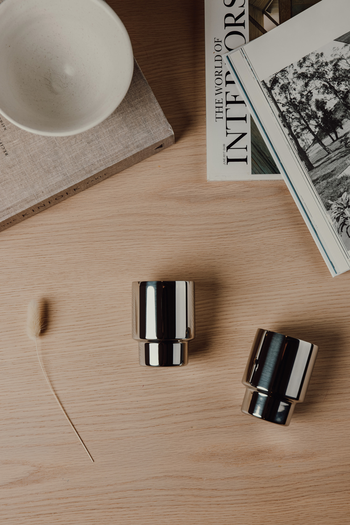 Hrnek je vyroben z recyklované nerezové ocel. V tomto hrnku se snoubí jednoduchost s moderním nádechem a ztělesňuje podstatu skandinávského designu. Díky své praktické velikosti (16 ml) a stohovatelnému tvaru je ideální pro každodenní použití a snadno se skladuje. Dvoustěnná konstrukce pomáhá udržet teplotu nápoje po delší dobu. Nelze mýt v myčce nádobí ani ohřívat v mikrovlnné troubě, pouze ruční mytí. Tento výrobek obsahuje 40 % recyklované nerezové oceli. Rozměry: 8.5 x o 6.5 cm