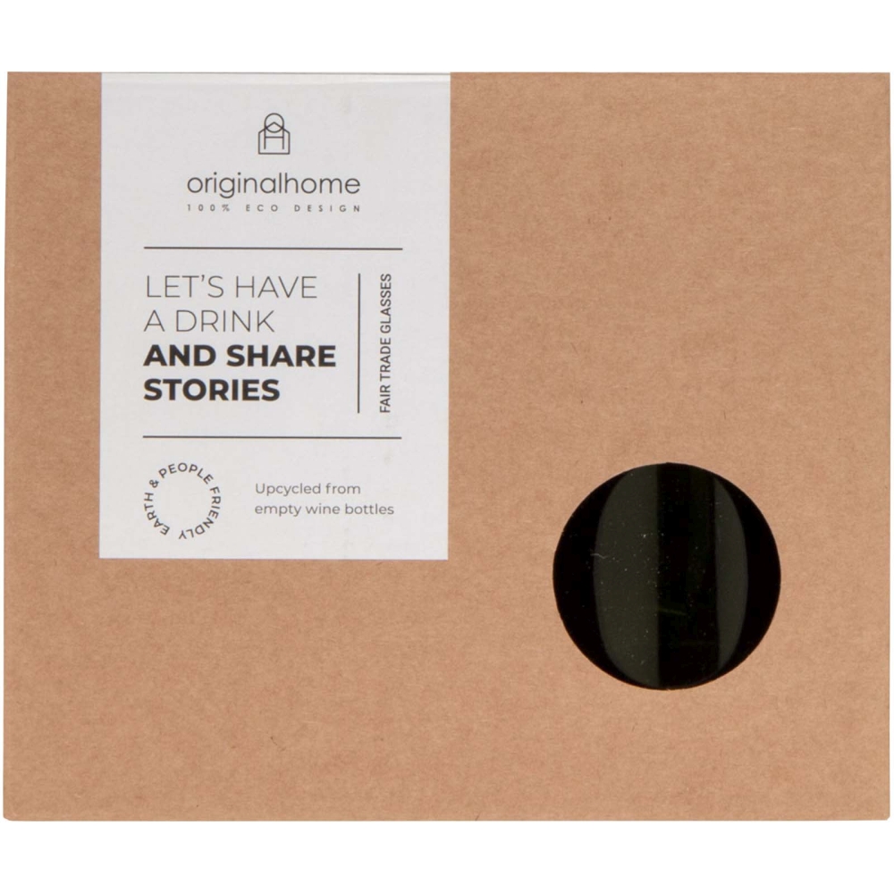 Sada dvou sklenic o objemu 280 ml vyrobených z recyklovaných lahví od vína. Tyto sklenice se perfektně hodí pro jakýkoli druh nápoje a jsou proto ideální jak pro každodenní použití, tak pro zvláštní příležitosti. Dodává se v dárkové krabičce. Rozměry: 14 x 8 x 7 x O 7 cm