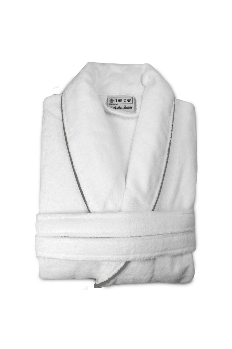 Sametový župan bílý s šedým lemováním 450 gr/m2, bílá, XXL/XXXL