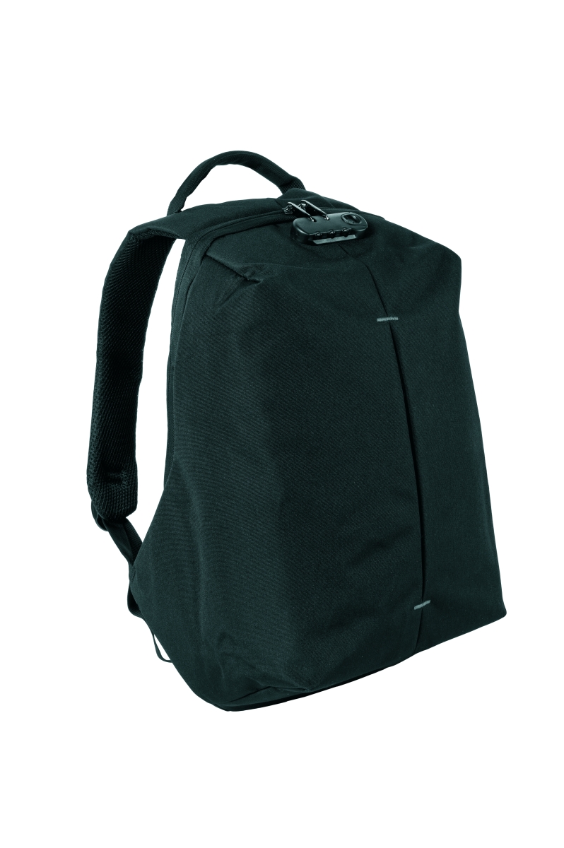Bezpečnostní batoh značky Schwarzwolf s prvky, které znesnadňují vykradení. Vstup do hlavního prostoru zajišťuje zip, který je umístěn na Vašich zádech, je tedy těžko přístupný někým jiným a táhla zipu jsou zajištěna kódovým zámkem. Batoh má také skrytou kapsu pro platební kartu nebo klíče. Ve vnitřní části je polstrovaný prostor pro notebook o velikosti 15“ a tablet o velikosti 10“. Součástí je i USB výstup včetně USB kabelu. V zadní části je pás pro připevnění k cestovnímu kufru. Přední plocha je opatřena refexním doplňkem. Objem 20 l. Hmotnost 720 g. Materiál 210D polyester. Rozměry: 30 × 46 × 15 cm. Uhlíková stopa: gCO2 e13848.