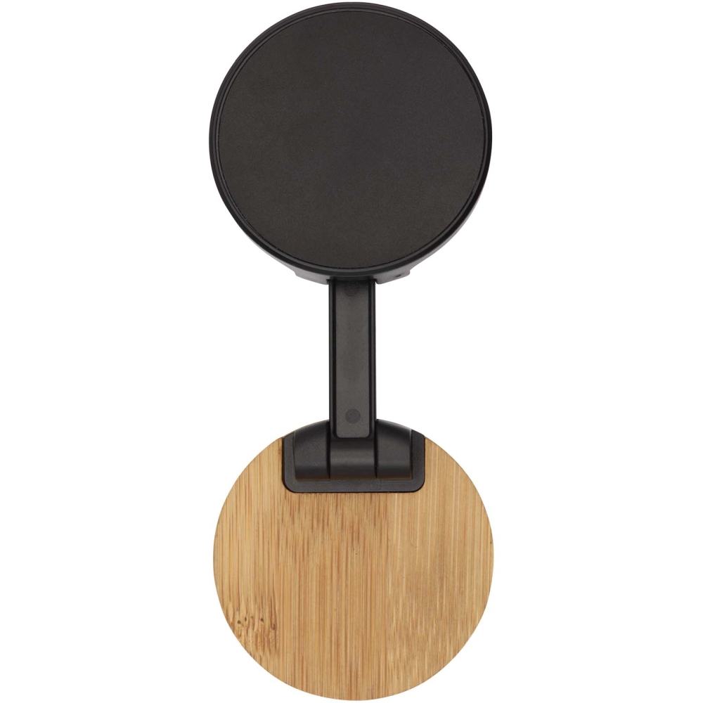 Skládací magnetický stojánek na telefon z recyklovaného plastu s bambusovými detaily, černá
