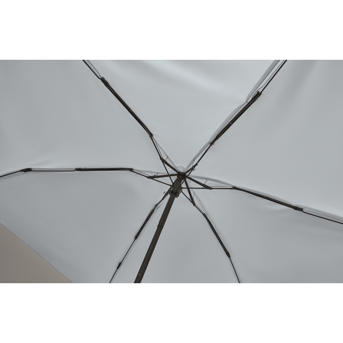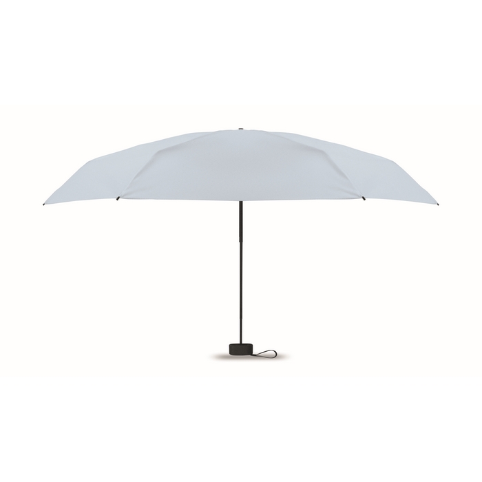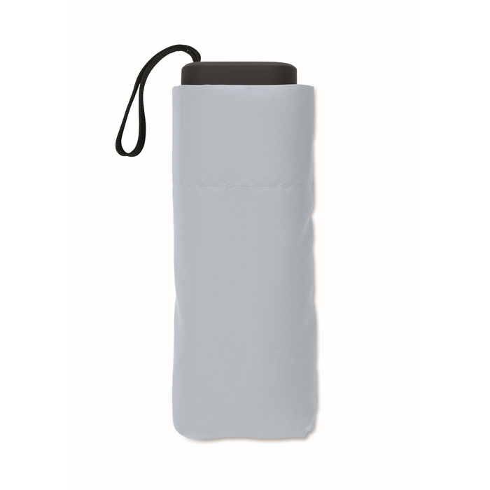 19palcový manuální skládací deštník z 190T pongee v obalu. Kovový a sklolaminátový větruodolný rám, černá pogumovaná rukojeť s popruhem na zápěstí. Kompaktní velikost, ve složeném stavu 17 cm. Rozměry: O90 x 17 cm