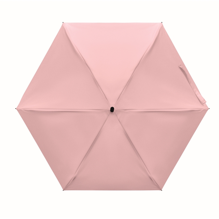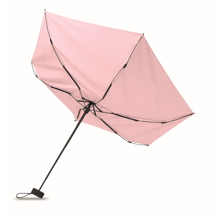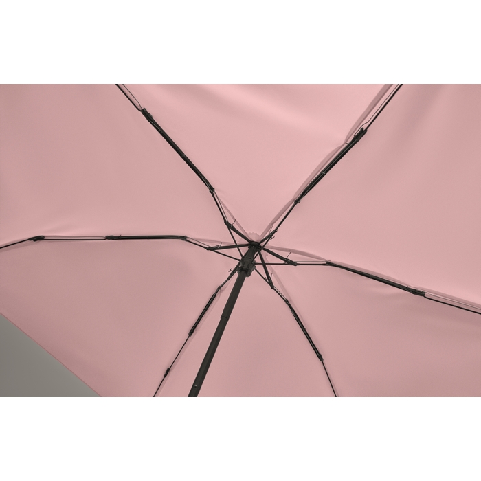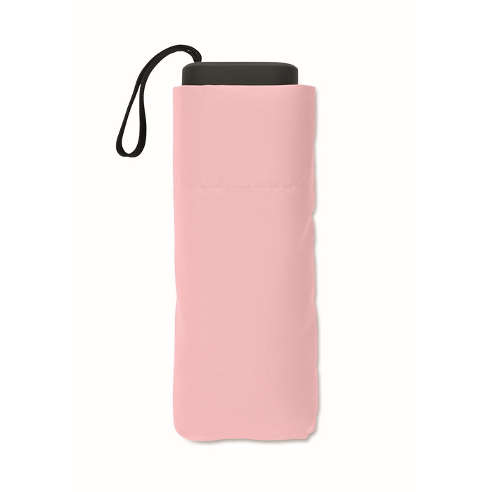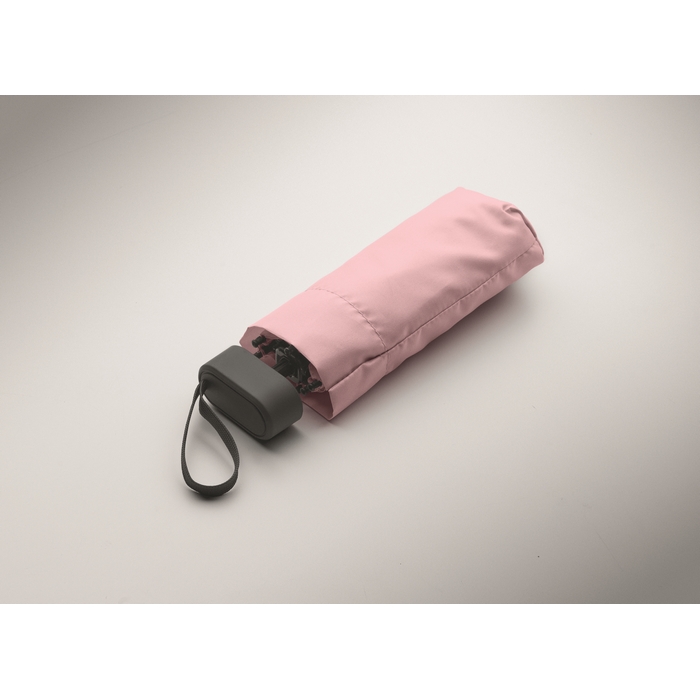 19palcový manuální skládací deštník z 190T pongee v obalu. Kovový a sklolaminátový větruodolný rám, černá pogumovaná rukojeť s popruhem na zápěstí. Kompaktní velikost, ve složeném stavu 17 cm. Rozměry: O90 x 17 cm