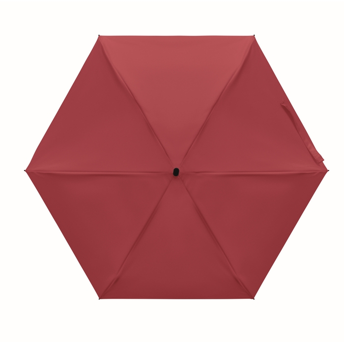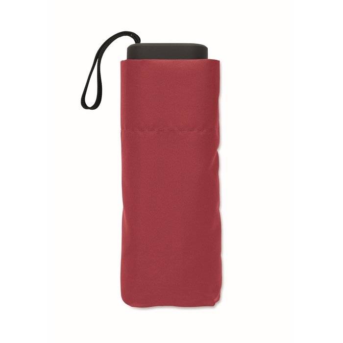 19palcový manuální skládací deštník z 190T pongee v obalu. Kovový a sklolaminátový větruodolný rám, černá pogumovaná rukojeť s popruhem na zápěstí. Kompaktní velikost, ve složeném stavu 17 cm. Rozměry: O90 x 17 cm