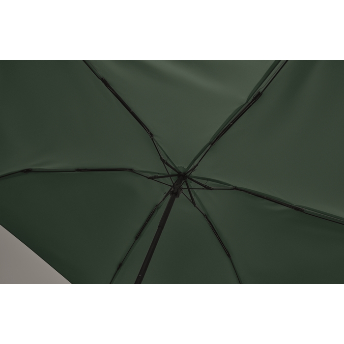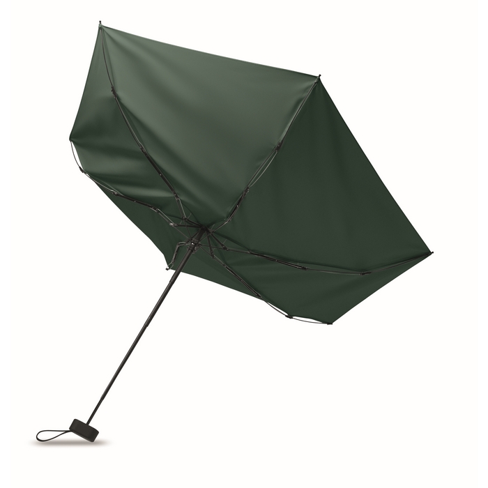 19palcový manuální skládací deštník z 190T pongee v obalu. Kovový a sklolaminátový větruodolný rám, černá pogumovaná rukojeť s popruhem na zápěstí. Kompaktní velikost, ve složeném stavu 17 cm. Rozměry: O90 x 17 cm