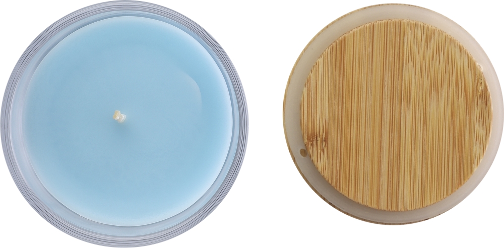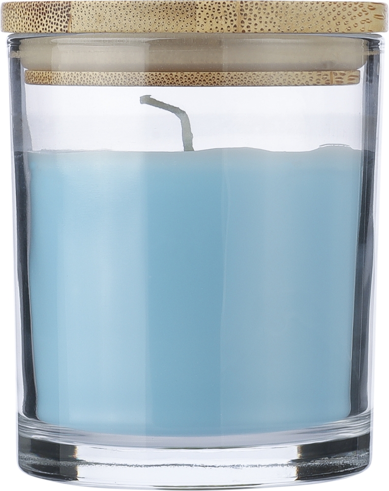Skleněná svíčka se 120 gramy barevného vosku a vanilkovou vůní, umístěná v průhledné skleněné nádobě s bambusovým víčkem. Poskytuje přibližně 20 hodin hoření. Jednotlivě baleno v bílé kartonové tubě. Rozměry: O 7 x 8,5 cm.