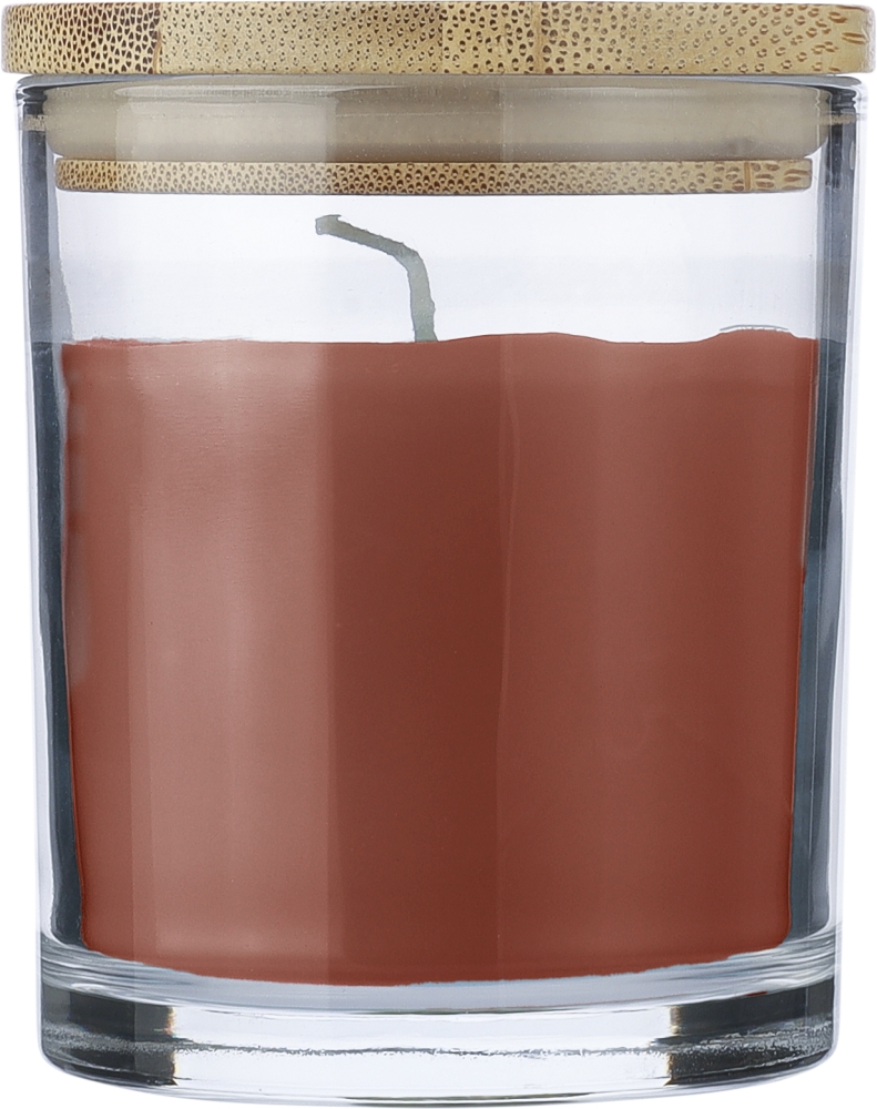 Skleněná svíčka se 120 gramy barevného vosku a vanilkovou vůní, umístěná v průhledné skleněné nádobě s bambusovým víčkem. Poskytuje přibližně 20 hodin hoření. Jednotlivě baleno v bílé kartonové tubě. Rozměry: O 7 x 8,5 cm.