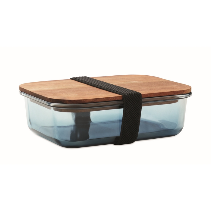 Skleněný obědový nebo svačinový box s víkem z akáciového dřeva a elastickým uzávěrem z RPET gumičky. Objem 800 ml.Rozměry: 19,7 x 14,7 x 6,2cm