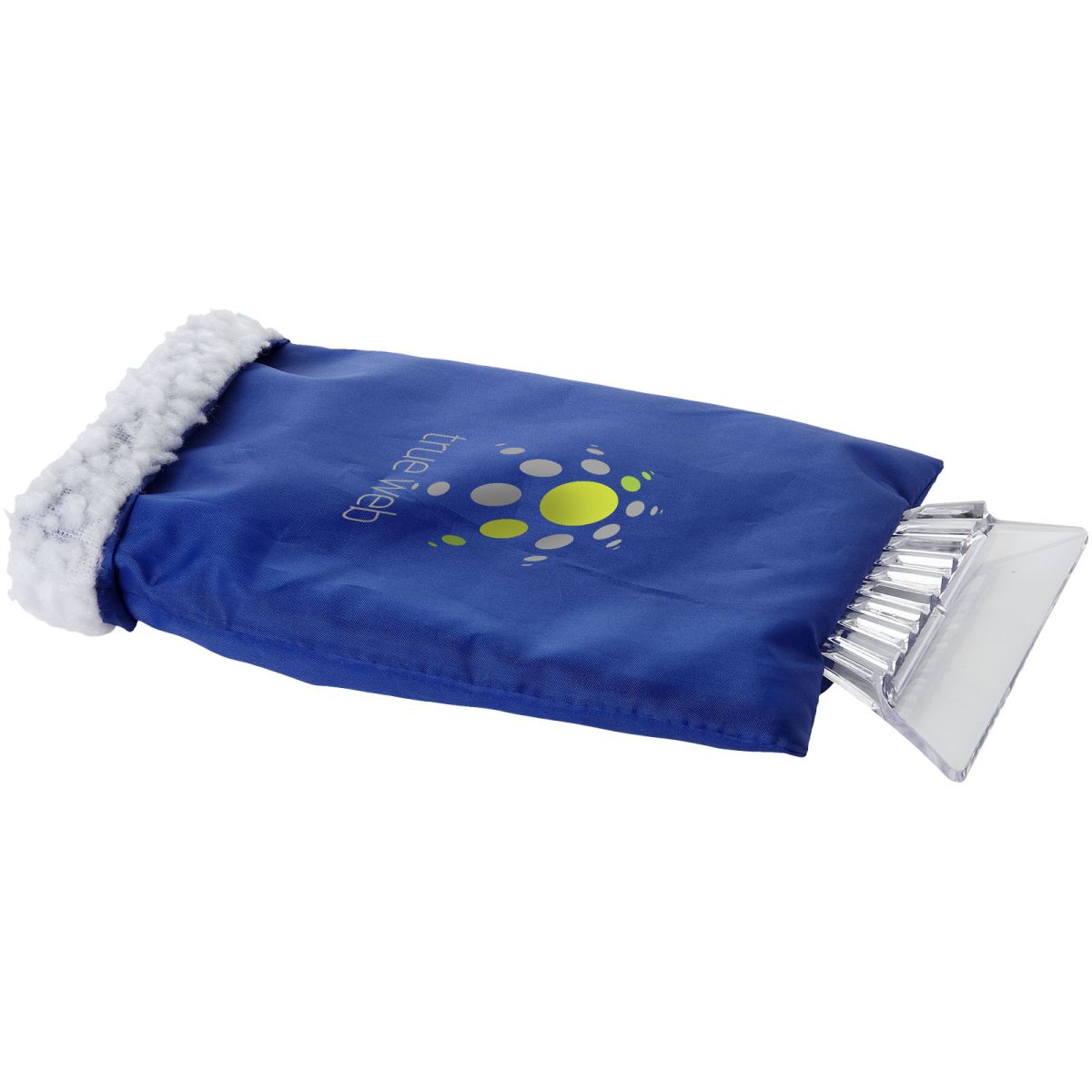 Škrabka na led s ochrannou rukavicí z polyesteru. Je balena v sáčku. Rozměr: 29 x 16 x 2 cm.