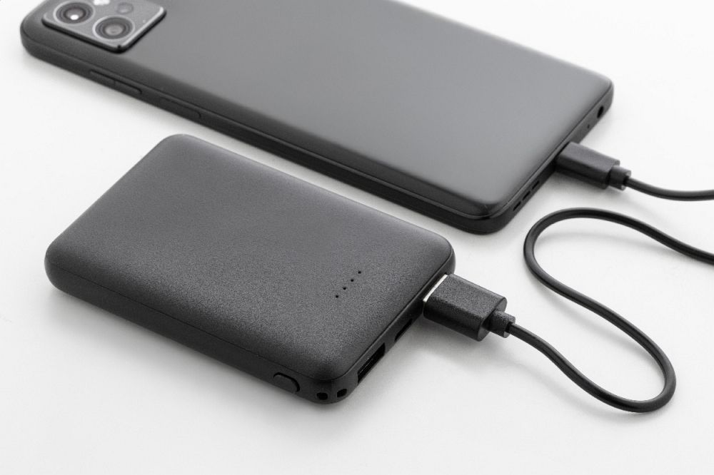 Slim powerbanka z recyklovaného ABS s baterií o kapacitě 5 000 mAh, černá