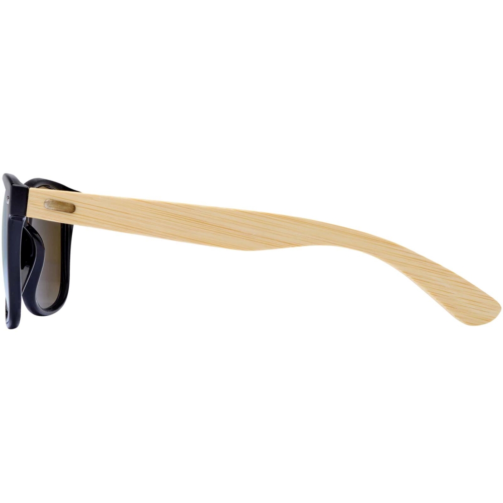 Stylové sluneční brýle s barevnými skly a bambusovými nožičkami. Čočky s UV 400 chrání před škodlivým ultrafialovým zářením. Rozměry: 14 x 4,5 x 14 cm