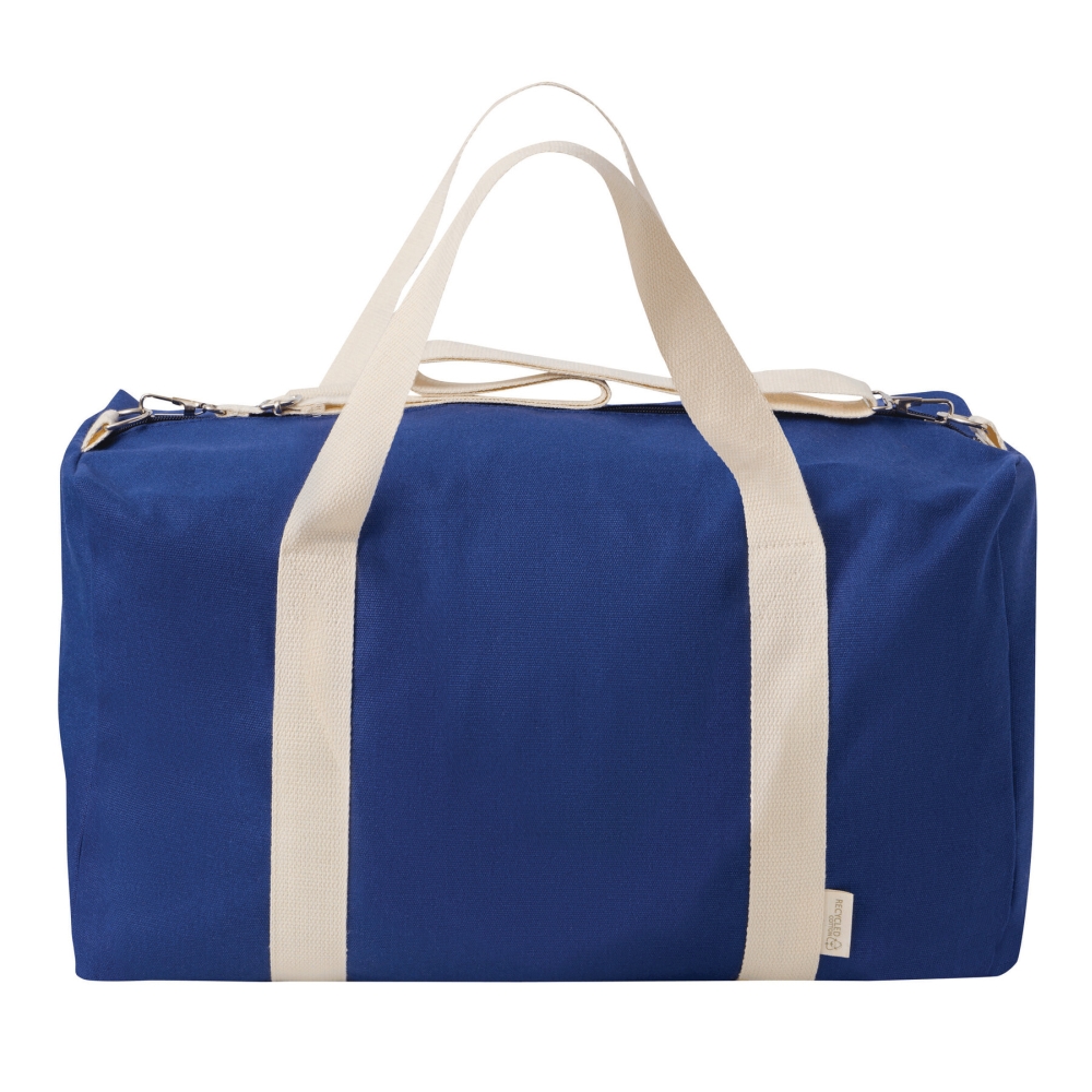 Sportovní taška z recyklované bavlny a polyesteru, prostorná hlavní přihrádka na zip, 2 rukojeti, nastavitelný a odnímatelný ramenní popruh. Rozměry: 48,5 x 27 x 21 cm