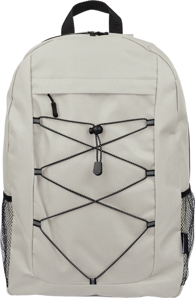Dobrodružný batoh z rPET polyesteru 600D se zapínáním na stahovací šňůrku a velkým hlavním prostorem na zip. Má boční síťované kapsy, elastické přední pásky, malou přední kapsu na zip, nastavitelné popruhy a štítek rPET. Rozměry: 14 cm x 30 cm