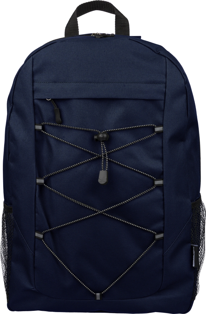 Dobrodružný batoh z rPET polyesteru 600D se zapínáním na stahovací šňůrku a velkým hlavním prostorem na zip. Má boční síťované kapsy, elastické přední pásky, malou přední kapsu na zip, nastavitelné popruhy a štítek rPET. Rozměry: 14 cm x 30 cm
