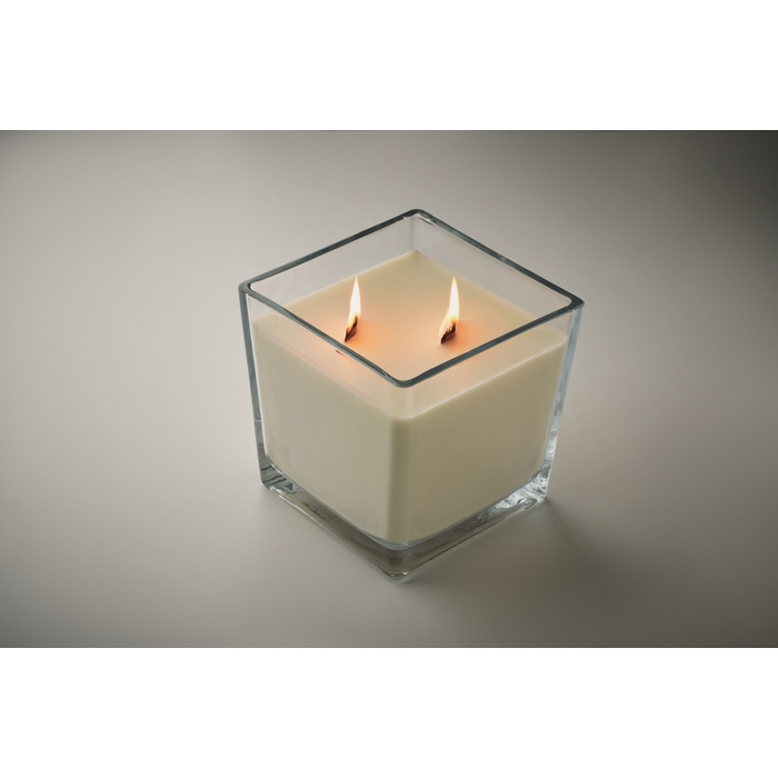 Extra velká 1300g svíčka z rostlinného vosku s vůní vanilky ve skle s 2 dřevěnými knoty a designem včelího úlu na horní straně. Doba hoření 70 hodinRozměry: 14 x 14 x 14cm
