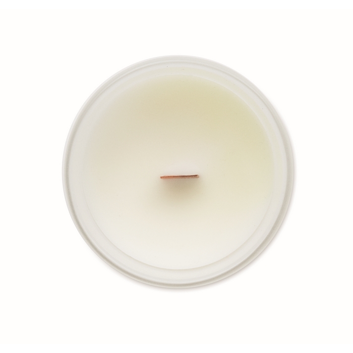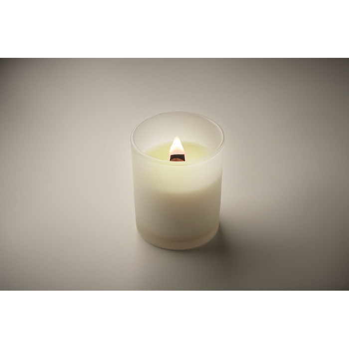 Svíčka 80g z rostlinného vosku s vůní vanilky. Ve skle, s dřevěným knotem. Doba hoření 15 hodin.Rozměry: 6,1 x 6,1 x 7,3cm