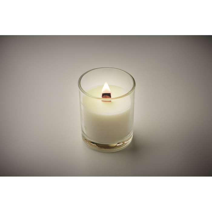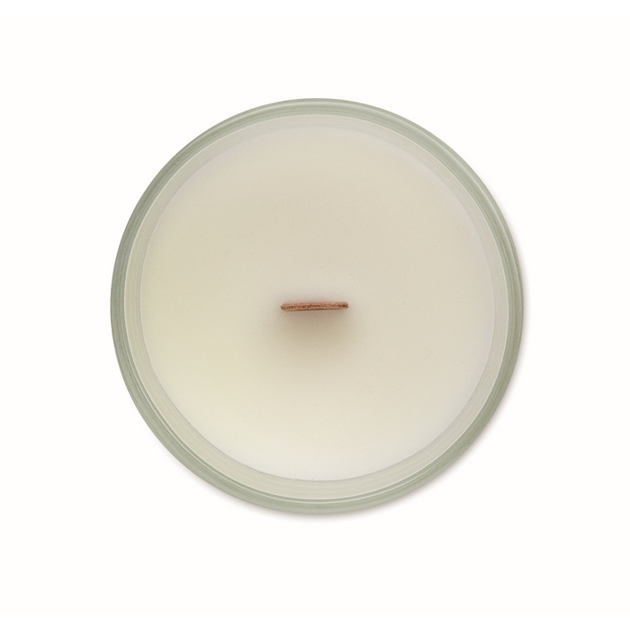 Svíčka 80g z rostlinného vosku s vůní vanilky. Ve skle, s dřevěným knotem. Doba hoření 15 hodin.Rozměry: 6,1 x 6,1 x 7,3cm
