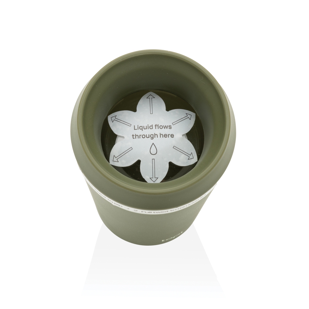 Lehký a odolný hrnek, který má tělo z recyklovaného plastu a objem 354 ml. Patentovaný design víčka s pitím v úhlu 360° vám umožní vychutnat si nápoj z jakéhokoli úhlu, zatímco díký průhlednému víčku vidíte svůj nápoj.Rozměry: 15.8 x o 8.8 cm