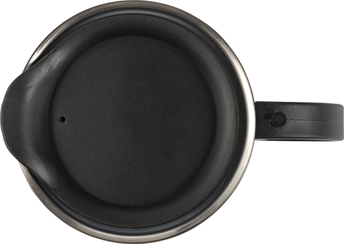 Dvoustěnný cestovní termohrnek z nerezové oceli o objemu 350 ml. Nerezový zvenku i zevnitř. Víčko hrnku obsahuje silikonový kroužek a spodní strana má protiskluzové vlastnosti. Rozměry: O 9,5 x 13,2 cm.