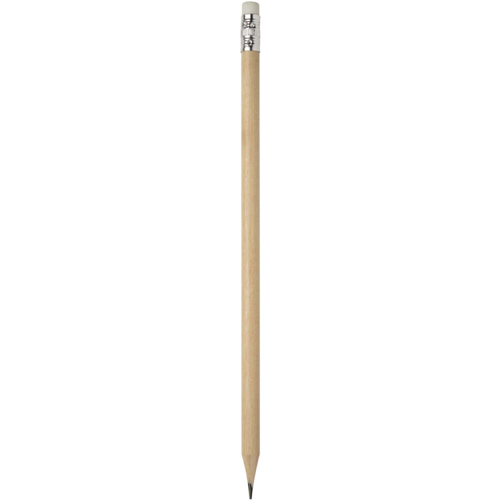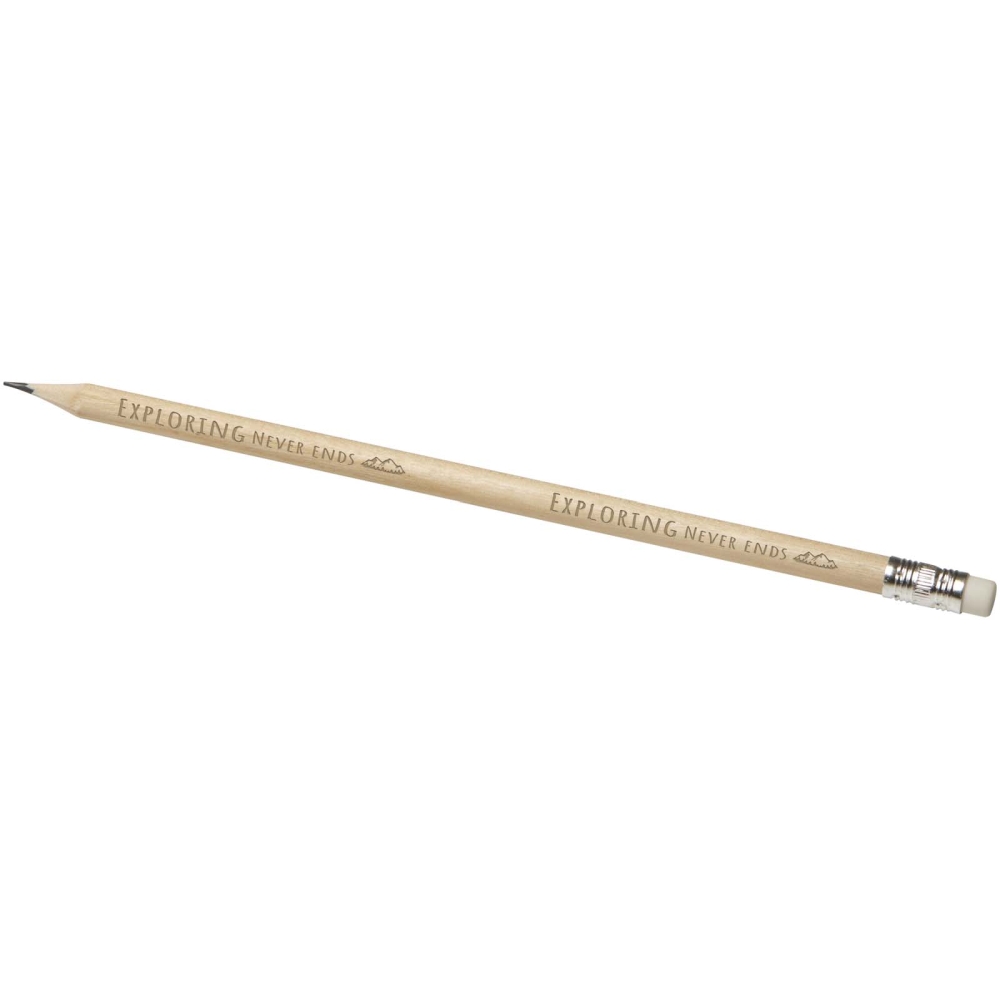 Tužka s gumou. Tužka je vyrobena z topolového dřeva, guma je vyrobena z grafitu a objímka je vyrobena z hliníku. Rozměry: 19 x O 7 cm