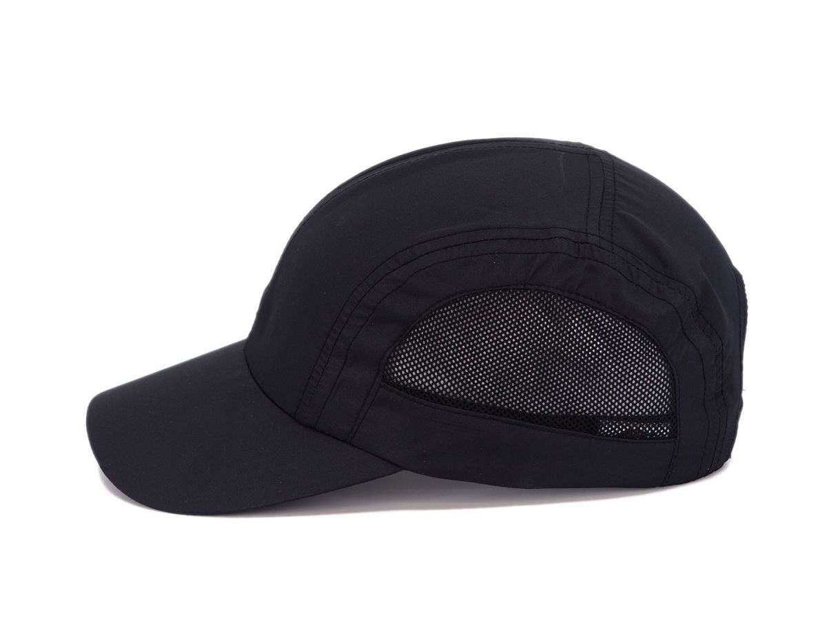 Vzdušná lehká čepice vhodná na sporty, zapínání na kovovou přezku, potící pásek a vnitřní lem, polyester.