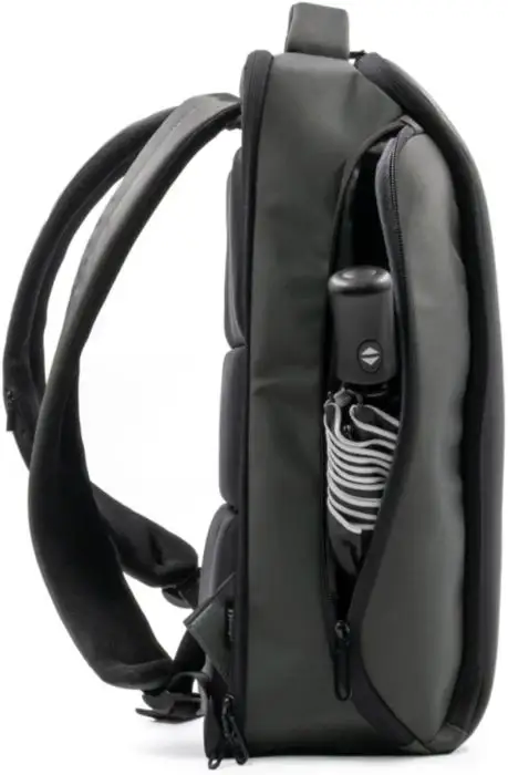 Batoh kombinuje udržitelnost, funkčnost a prvotřídní řemeslné zpracování v jednom elegantním designu. Je vyroben z recyklované balistické tkaniny 800D, která je odolná vůči vodě a skvrnám, a je doplněn veganskou kůží. Nabízí objem 22 litrů s polstrovanou přihrádkou na notebooky do velikosti 16 palců. Je určen pro práci, cestování a každodenní použití a disponuje zadní přihrádkou s ochranou proti krádeži, integrovanou přihrádkou na brýle, dvěma bočními přihrádkami a popruhem na kolečka. Měkké ventilační polstrování na zádech zvyšuje pohodlí, díky čemuž je spolehlivým a stylovým společníkem, ať už jdete kamkoli. Rozměry: 15,5 cm x 43 cm