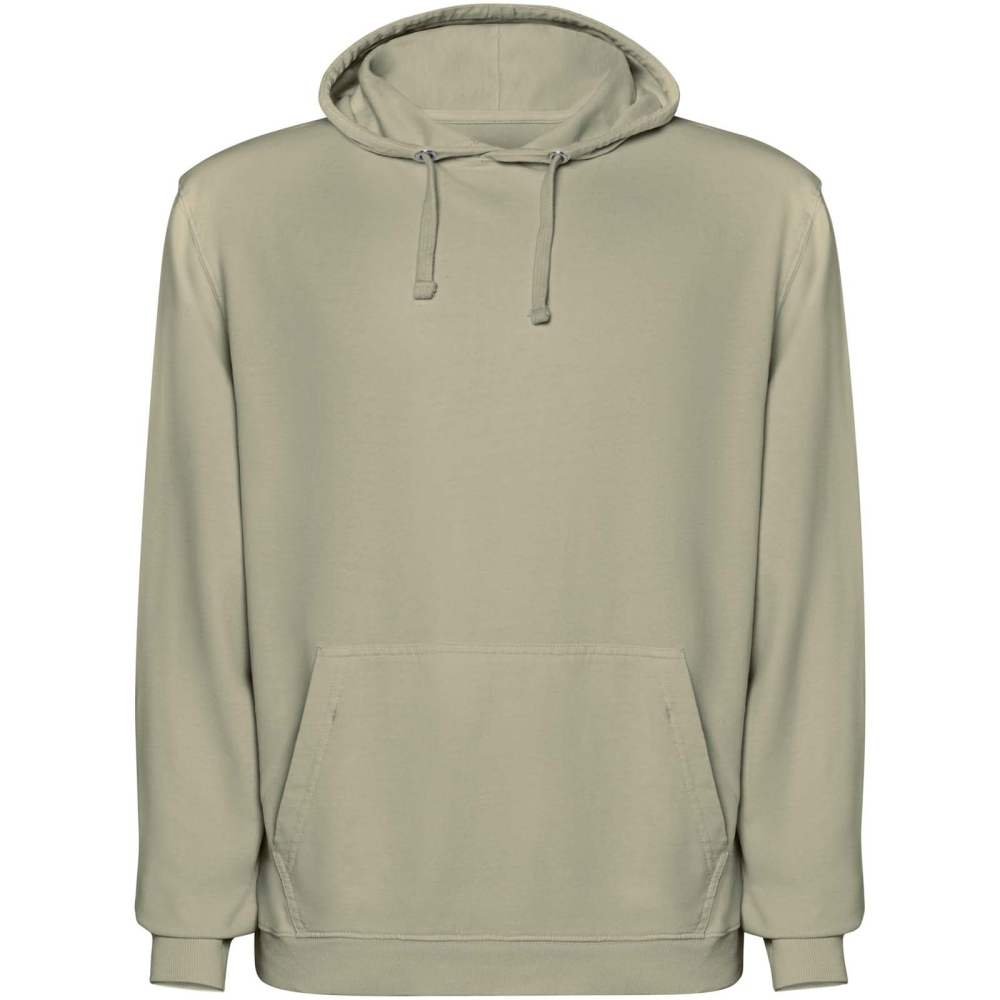 Unisex mikina s kapucí se sepraným vzhledem. Žebrované manžety a lem 2 × 1. Kapuce s podšívkou z jednolícního žerzeje v tónu látky se sladěnými plochými šňůrkami. Krycí steh v tónu látky u krku. Klokaní kapsa.