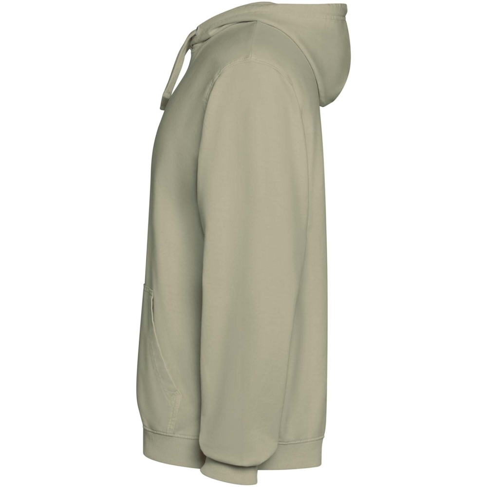 Unisex mikina s kapucí se sepraným vzhledem. Žebrované manžety a lem 2 × 1. Kapuce s podšívkou z jednolícního žerzeje v tónu látky se sladěnými plochými šňůrkami. Krycí steh v tónu látky u krku. Klokaní kapsa.