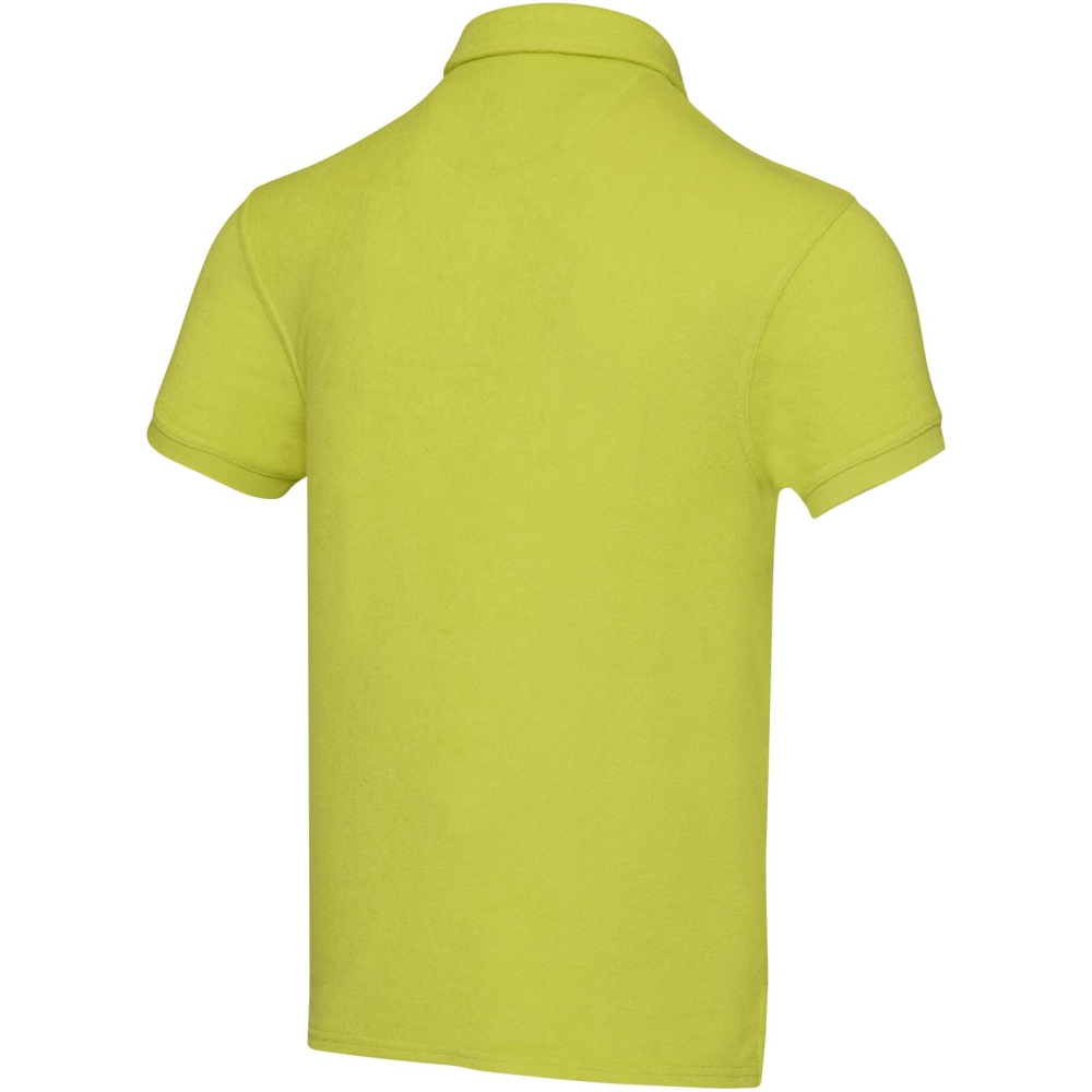 Unisex polo Akoya z recyklovaného froté. Toto polo, vyrobené z měkké froté tkaniny (230 g/m2) z 80% recyklované bavlny a 20% recyklovaného polyesteru, je pocitově lehké a prodyšné, takže se ideálně hodí do teplého počasí. Je navrženo s ohledem na pohodlí i funkčnost, má ležérní střih, žebrované manžety pro nádech elegance a pohodlnou náprsní kapsu.