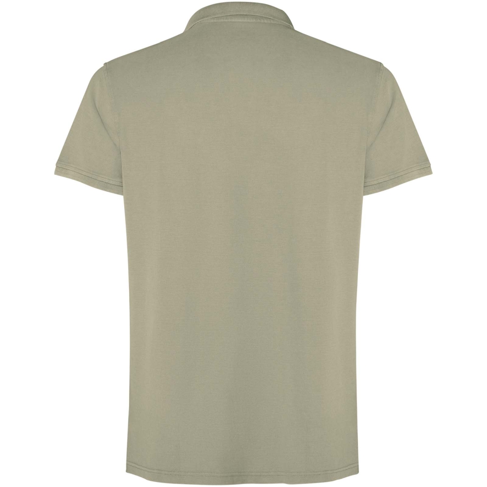 Unisex polokošile s krátkým rukávem. Sepraný vzhled. Žebrovaný límec a manžety 1 × 1 s bočními otvory. Krycí steh v tónu látky. Zapínání na tři knoflíky.