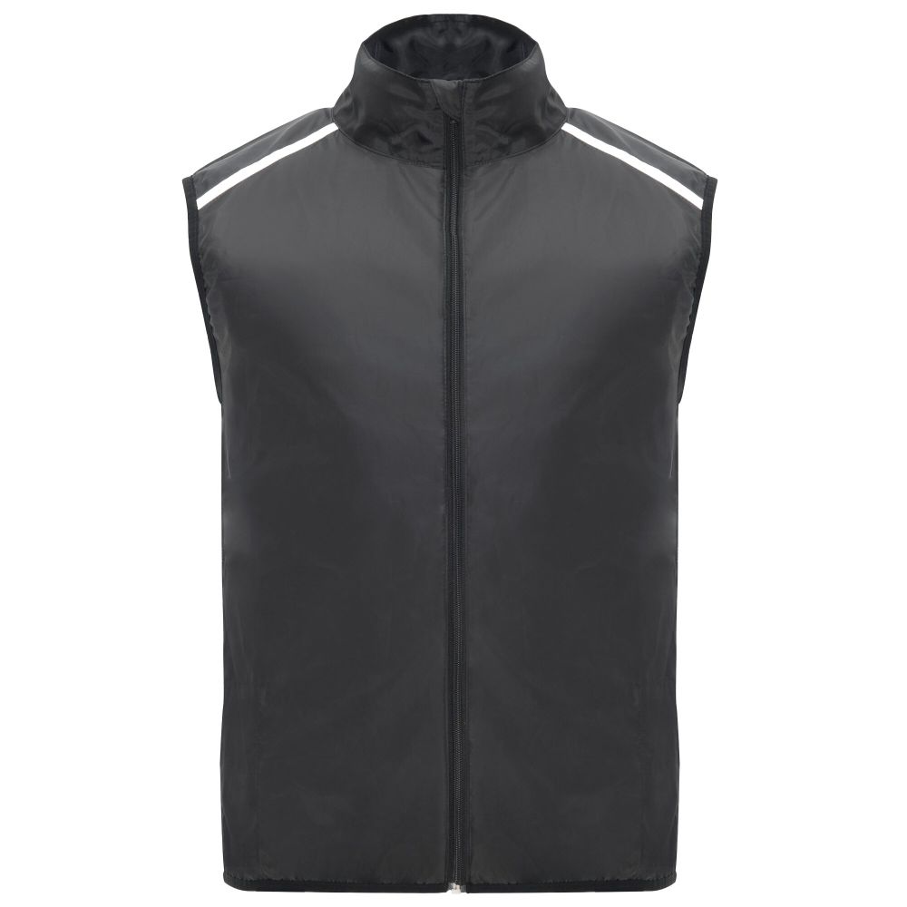 Větruodolná a prodyšná. Přední zip s odpovídajícím chráničem brady. Elastické lemování v průramcích a na spodním okraji. Spodní část zad z mikroperforované látky. Vysoce viditelné detaily na horní, přední a zadní straně. Kapsa s elastickým páskem pro uložení vesty a její nošení na zápěstí. Odnímatelný štítek.