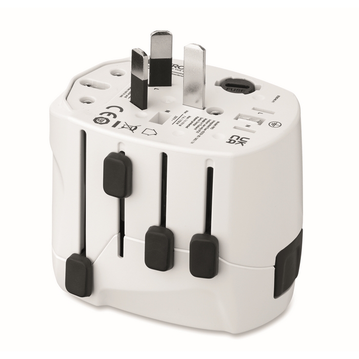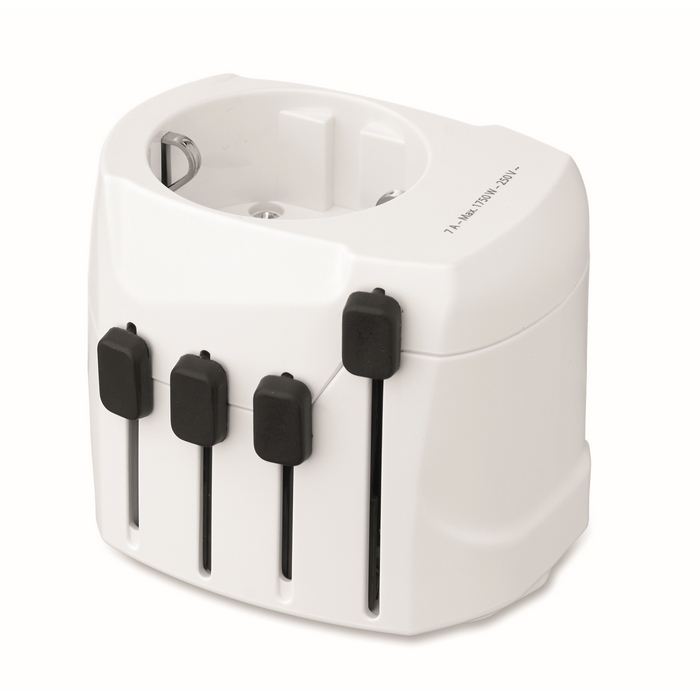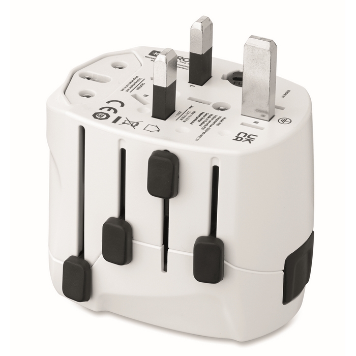 Univerzální třípólový cestovní adaptér do světa, bílá