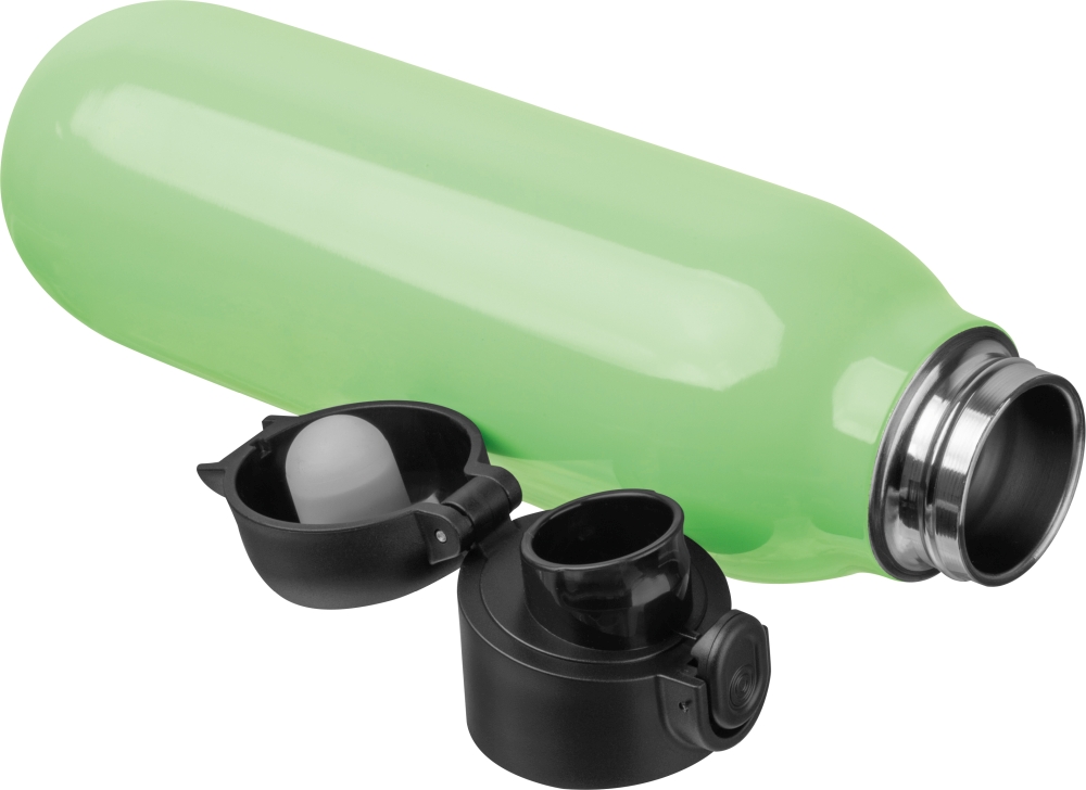 Dvoustěnná vakuová nerezová termoska 500 ml, víčko na těsnení se otevírá kliknutím. Rozměry: o 6,5 x 25,7 cm