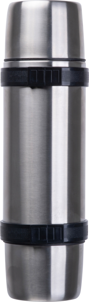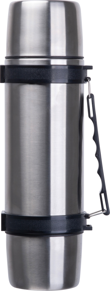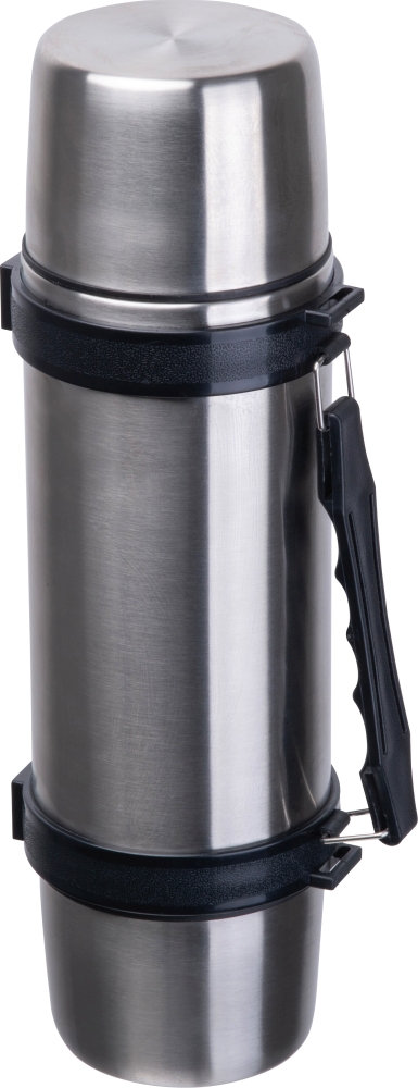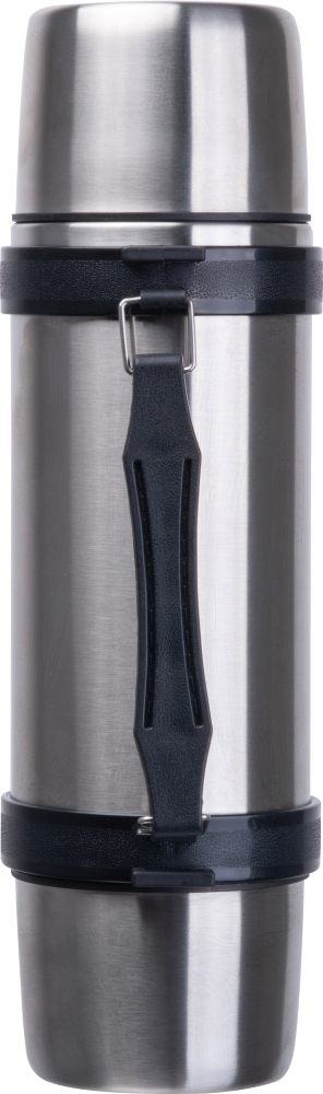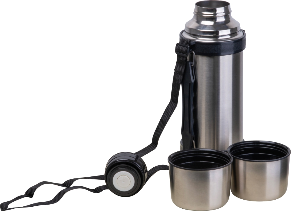Robustní vakuově izolovaná nerezová termoska 1000 ml s popruhem a dvěma integrovanými pohárky, ideální na cestování. Rozměry: o 9,8 x 33,5 cm