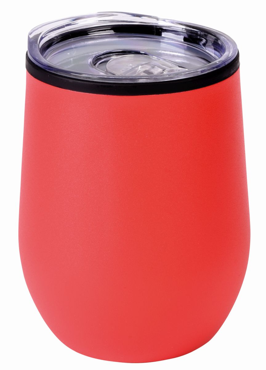 bVakuový cestovní hrnek BOWLY/b, dvoustěnný: vnější část z nerezové oceli a vnitřní část z plastu, víčko se silikonovým O-kroužkem a integrovaným otvorem na pití, kapacita cca. 300 ml. Rozměr: O8,8 x 11,2 cm