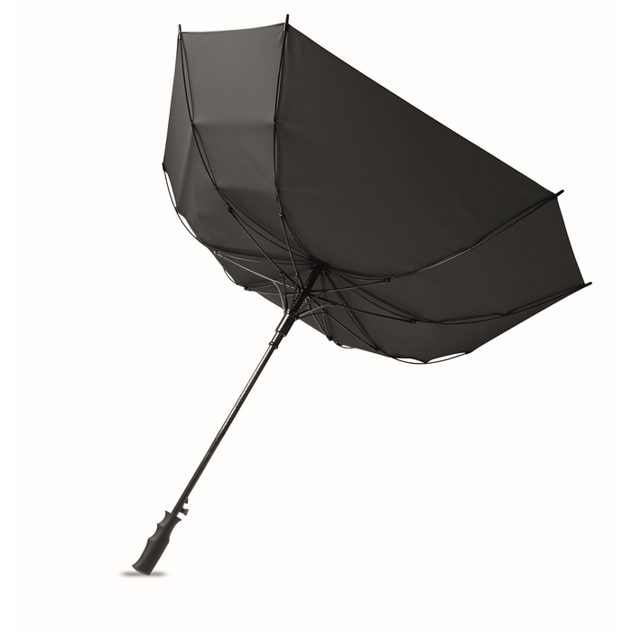 23palcový větruodolný čtvercový deštník s automatickým otevíráním z polyesteru 190T pongee. Tyč a žebra ze sklolaminátu a rukojeť z ABS s gumovou povrchovou úpravou. Rozměry: O104 x 79.5 cm