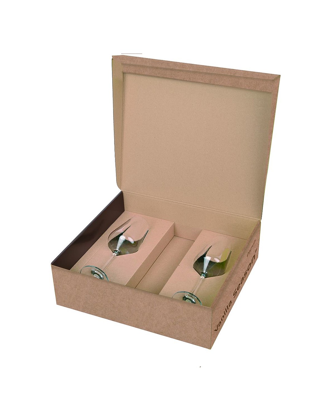 Značková dárková krabice Vanilla Season na víno se dvěma skleničkami Bohemia Crystal a volným prostorem na Vámi vybranou láhev. Rozměry: sklenice na víno (250 ml) O 7,7 × 21,3 cm, prostor pro láhev 8 × 33 × 4,5 cm, balení 37,5 × 11 × 34 cm. Poznámka: Víno není součástí balení. Uhlíková stopa: gCO2 e602.