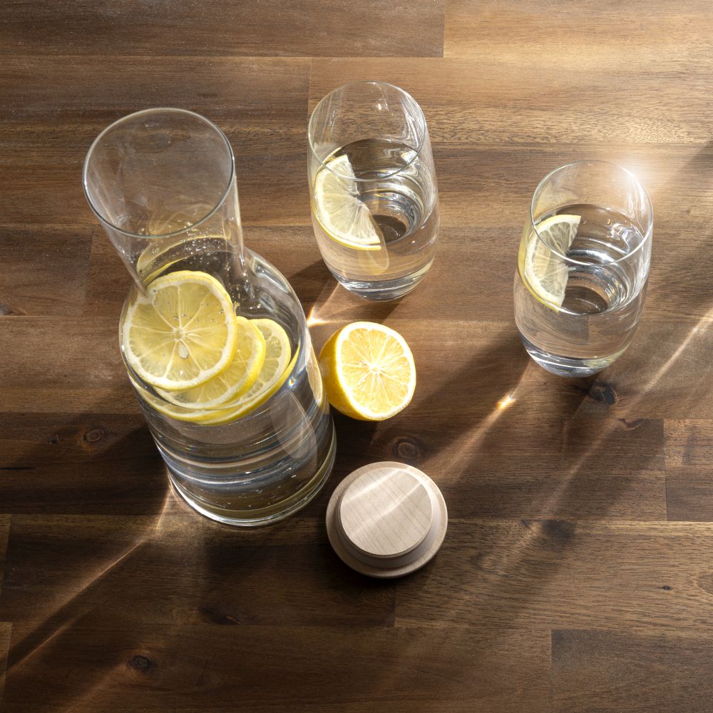 Elegantní sada skleněné karafy a 2 vysokých sklenic Bohemia Crystal. Karafa obsahuje dřevěnou zátku a má objem 1,2 l, objem sklenic je 350 ml. Tuto sadu oceníte především v horkých letních dnech například pro přípravu svěží pramenité vody či výborné citronády, ale i pro každodenní pitný režim. Baleno v dárkové krabici Vanilla Season.