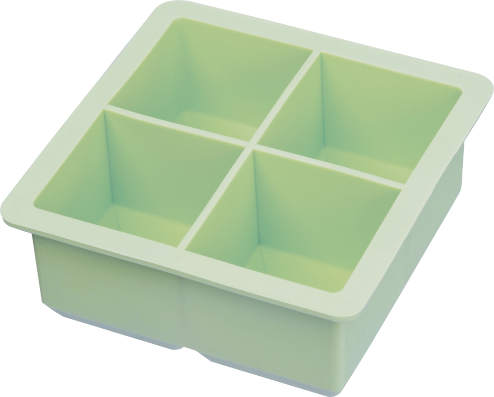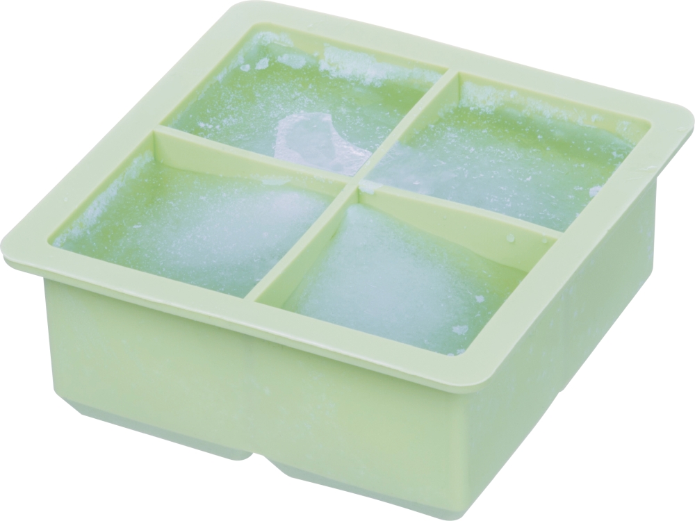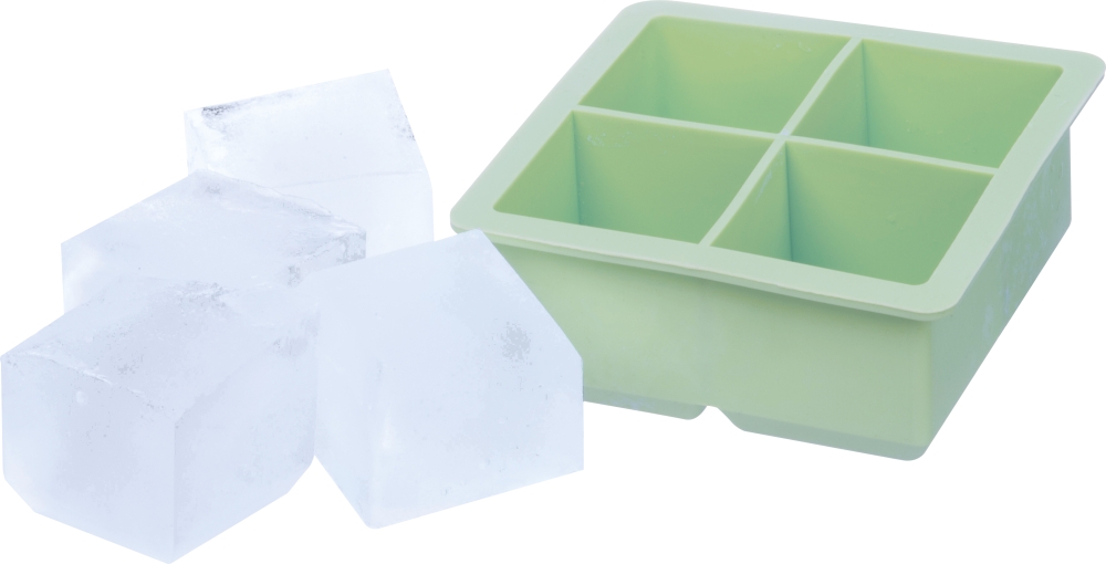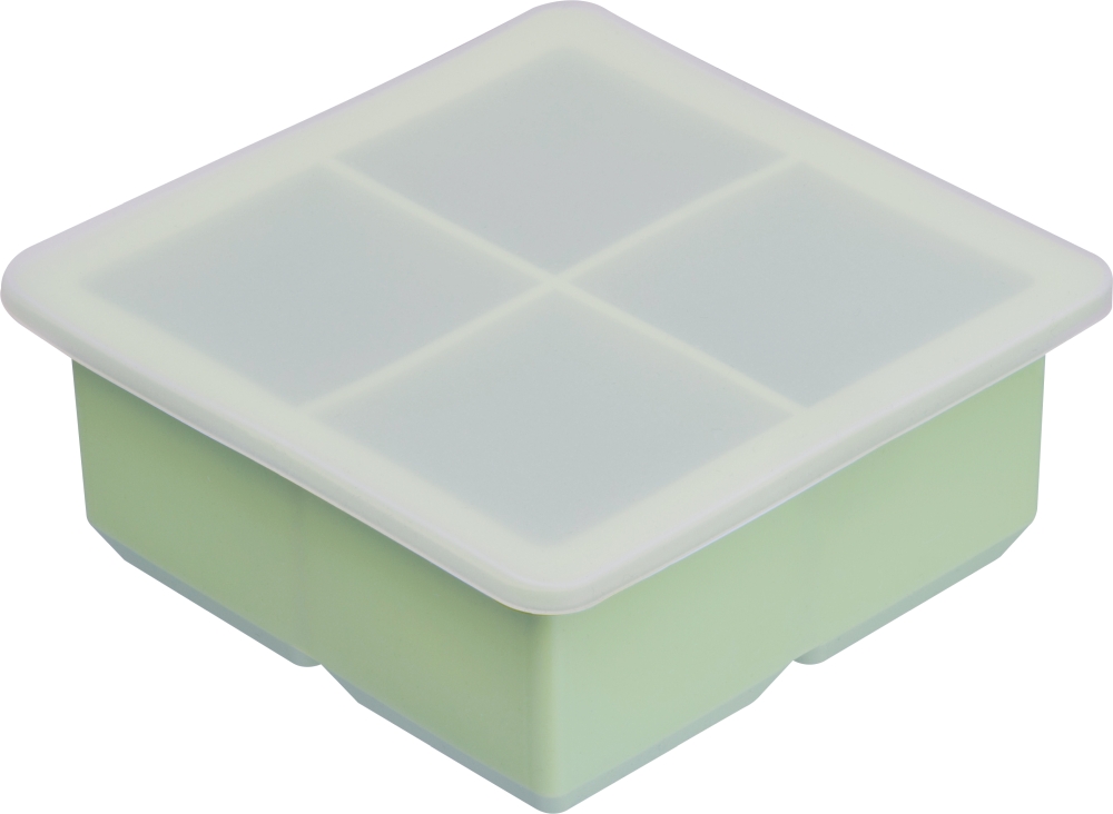 Silikonová forma na 4 XXL kostky ledu s průhledným víčkem. Rozměry: 12 x 12 x 5 cm