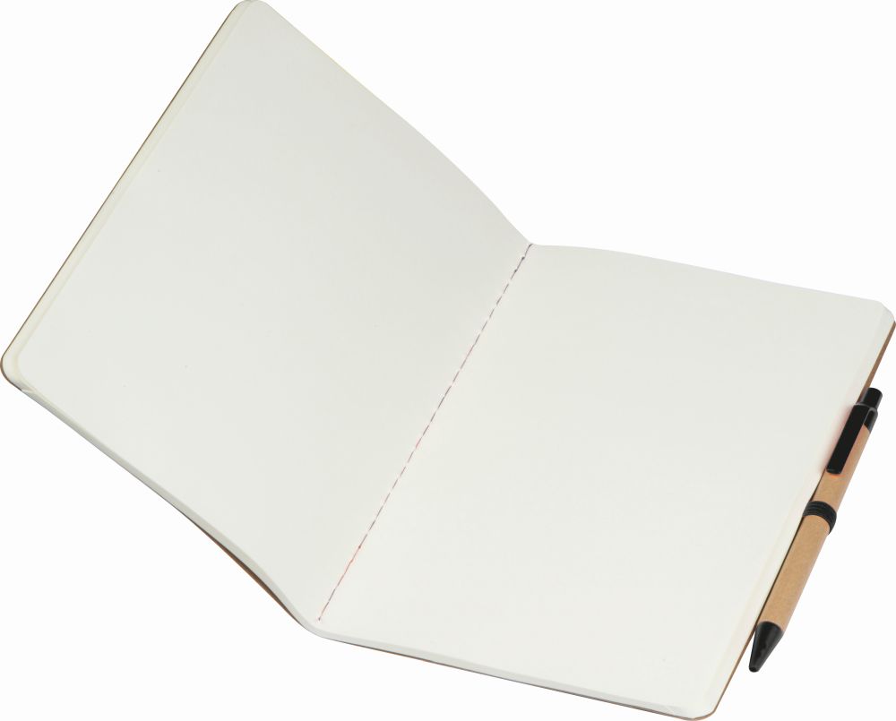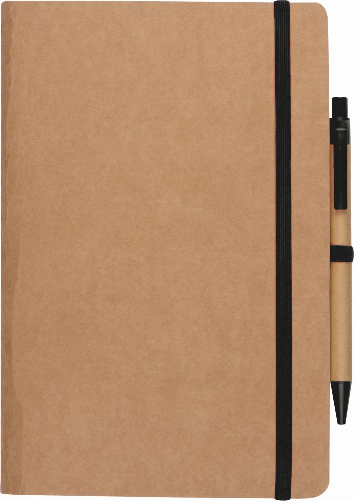 Zápisník A5, 60 listů, z recyklovaného papíru, s kuličkovým perem, s černou gumičkou